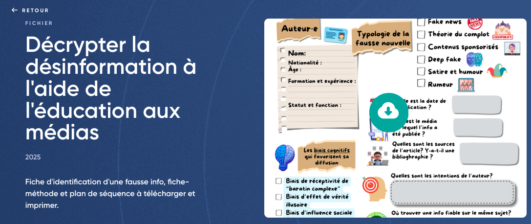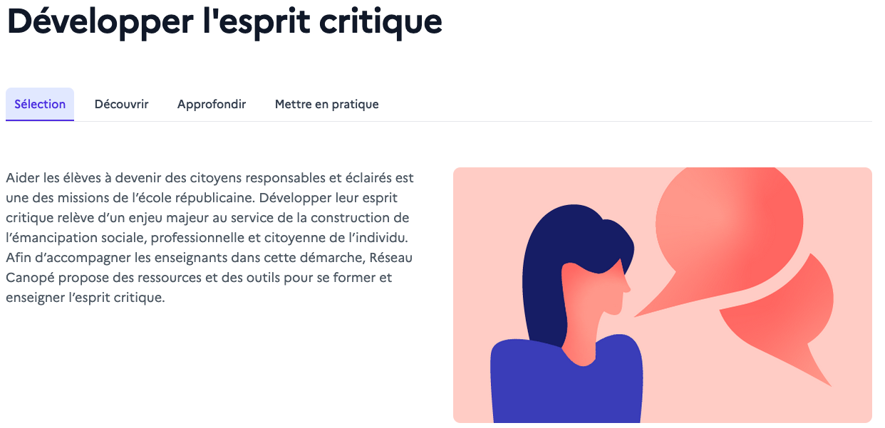 Cet espace spécialement dédié à l'esprit critique héberge des ressources variées telles que des séquences de cours, des pistes pédagogiques ou encore des animations, mais également des formations en ligne à destination des enseignants.
