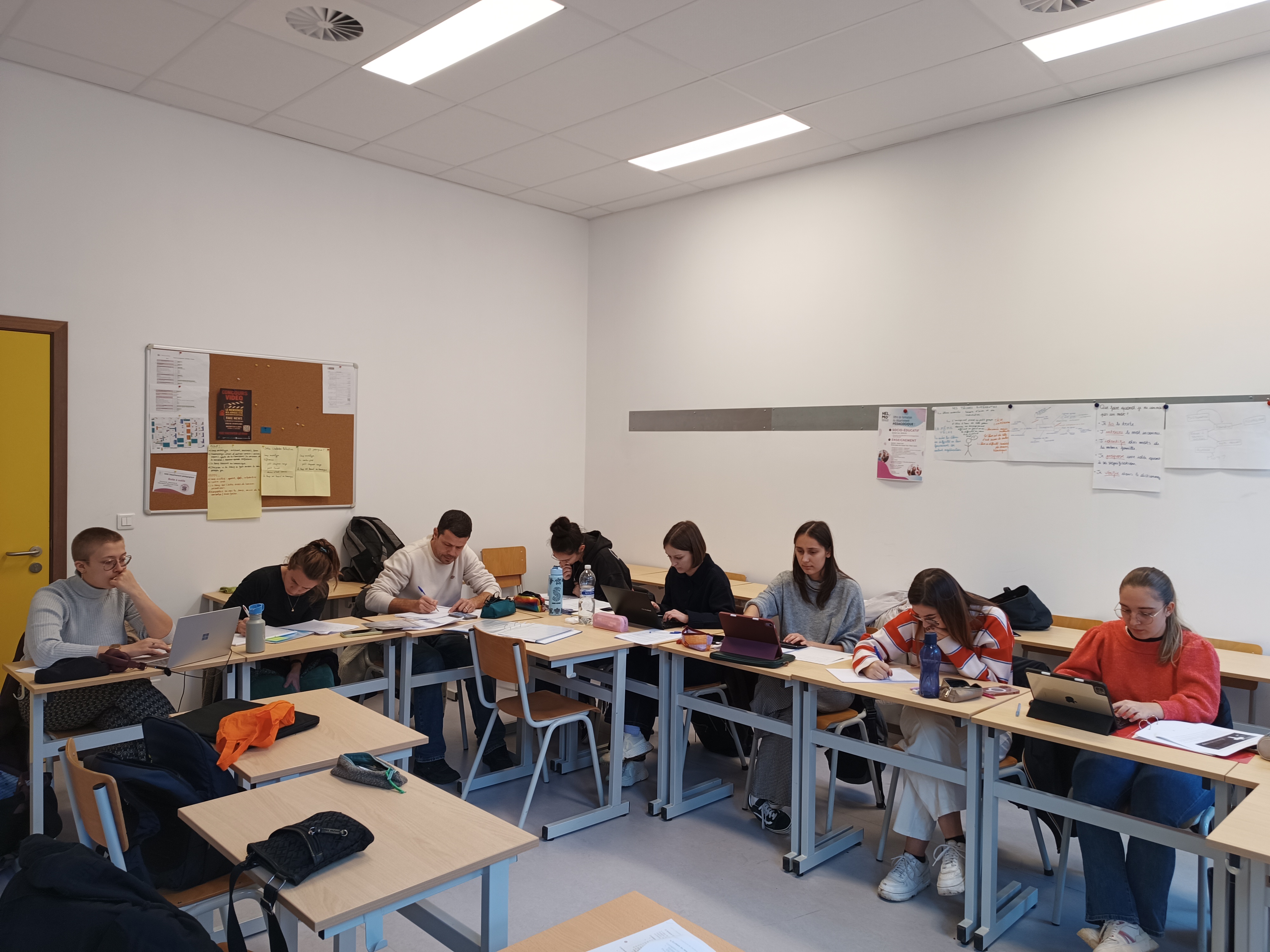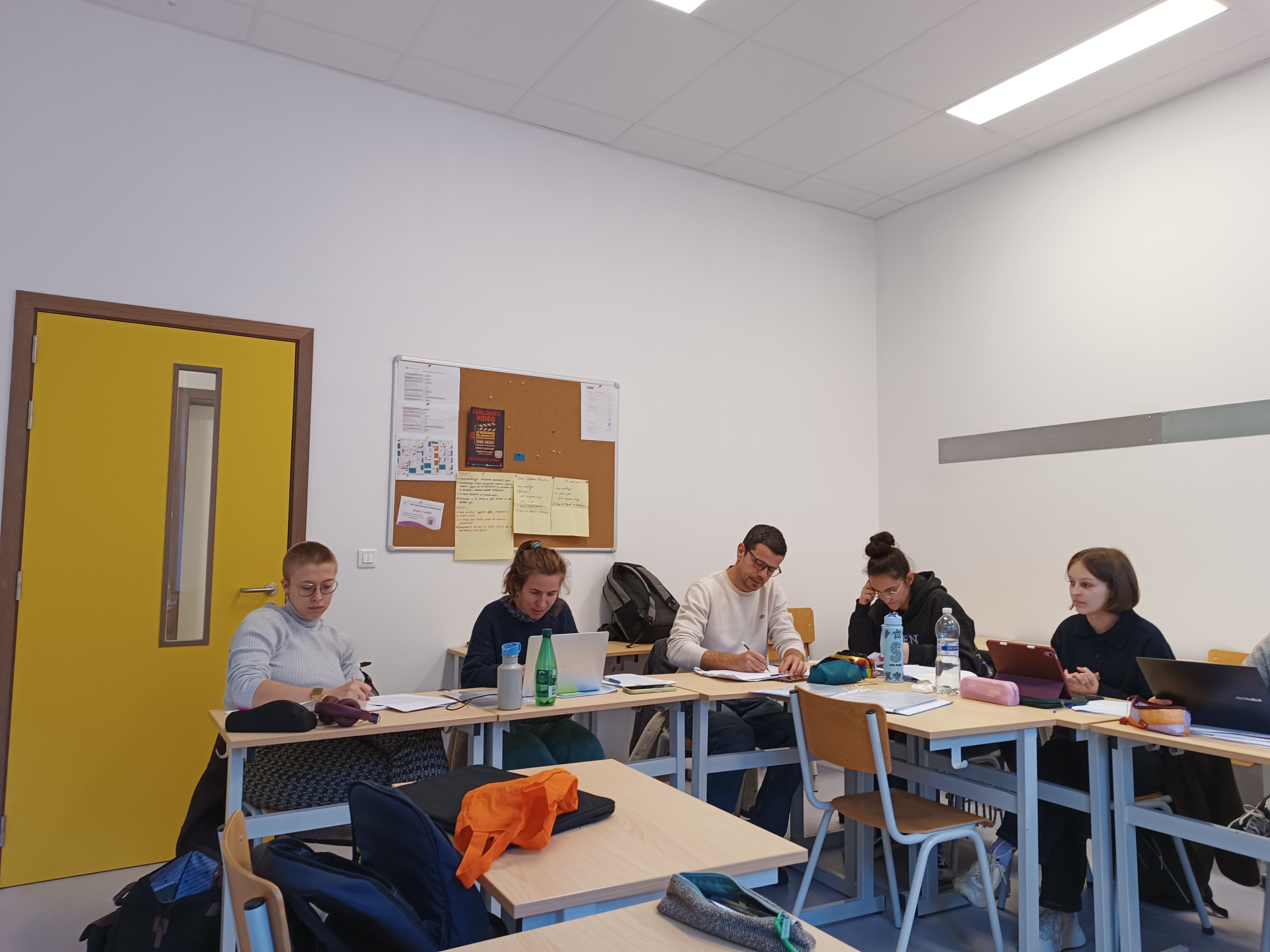 Ils ont ensuite écrit le début de la nouvelle à caractère psychologique en y intégrant une brève description du lieu observé pendant la promenade inspiratrice puisqu'il est le cadre spatiotemporel de l'évènement à raconter. Ils devaient y inclure au moins trois éléments décrits par l'intermédiaire d'un sens différent (à choisir parmi les observations notées) pour aider le lecteur à se représenter l'endroit, son atmosphère. Ils étaient également invités à se souvenir des choix lexicaux et syntaxiques analysés dans les extraits descriptifs du livre de Simenon qui avaient été lus. Dans le début de cette nouvelle, ils ont aussi raconté l'évènement de la vie du personnage qu'ils avaient imaginé en mentionnant en priorité ses pensées, ses émotions sous la forme d'un monologue intérieur. Ils ont été invités à interrompre leur texte à un moment qui peut donner envie au lecteur de connaitre la suite. Lors de l'écriture, ils pouvaient avoir accès à des dictionnaires en ligne si nécessaire.