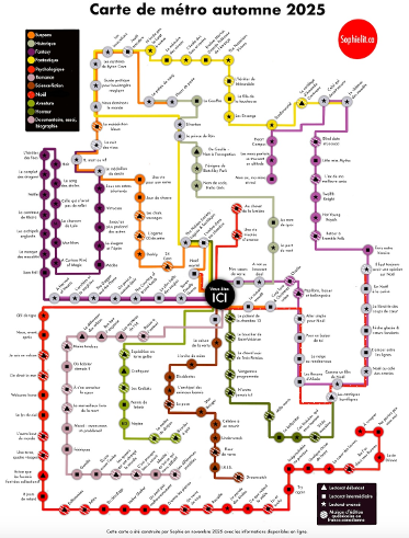 « On propose des romans au choix aux élèves, sur la base de la carte-métro du projet Sophielit.ca [...] Sa créatrice — Sophie Gagnon-Roberge NDLR — lit cinq à six romans par semaine pour recommander des nouveautés aux adolescents. » À chaque saison, elle y regroupe une sélection de romans pour adolescents sous la forme d’un plan de métro : chaque ligne correspond à un genre (fantastique, réalisme, romans psychologiques, etc.) et chaque station à un livre. En cliquant sur une station, les élèves découvrent la couverture, le résumé et une indication du niveau de difficulté de l’œuvre. Ils peuvent ainsi se « promener » dans la carte, suivre la ligne qui correspond à leurs gouts, comparer les titres et repérer celui qui les attire le plus.