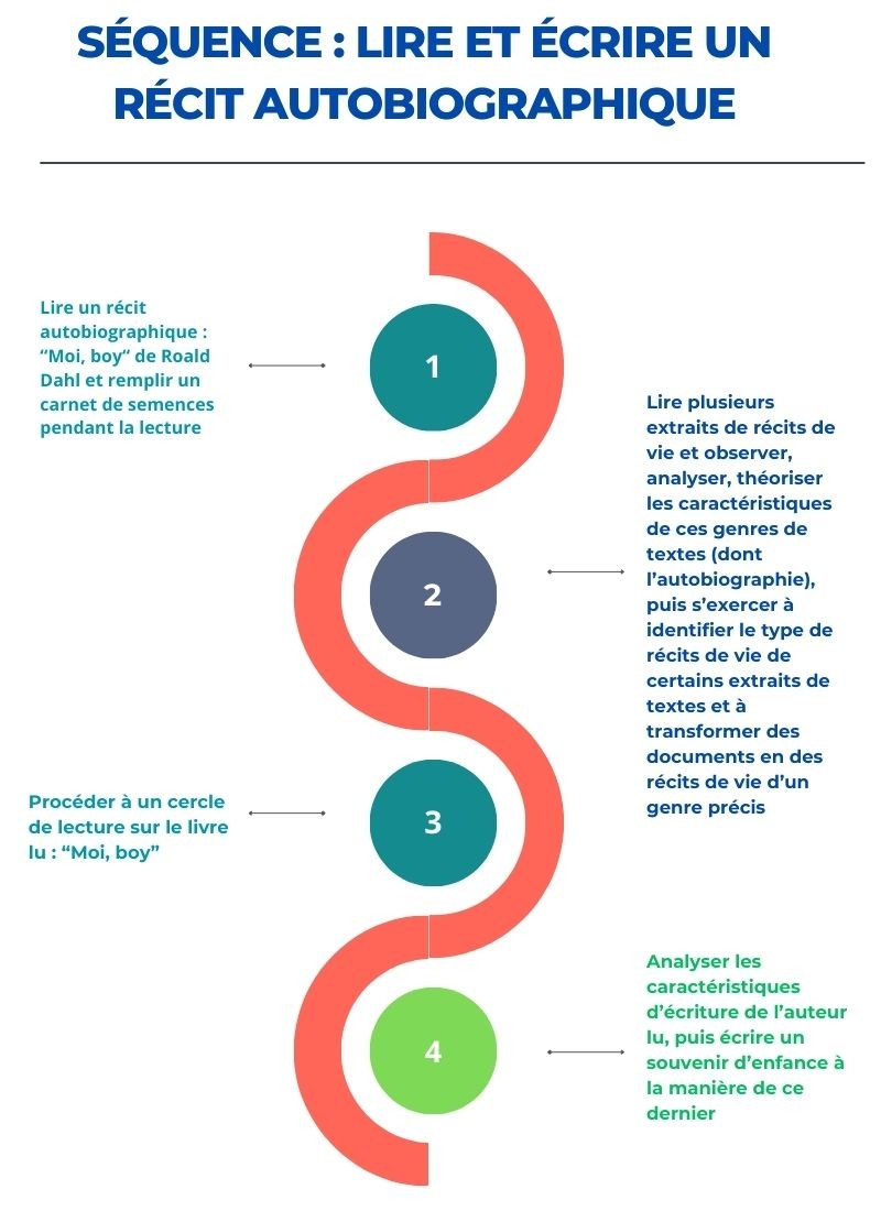 Après les activités leur permettant de découvrir et de s'exercer à maitriser les caractéristiques des récits de vie (dont l'autobiographie), Loona a organisé un cercle de lecture sur le roman lu. Ci-dessous, se trouve le document fourni aux élèves à propos de cette activité.